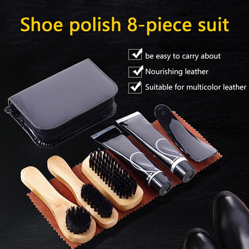 8PC Leather Shoe Shine Kit With Shine Polishing Tool