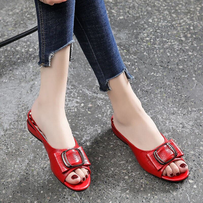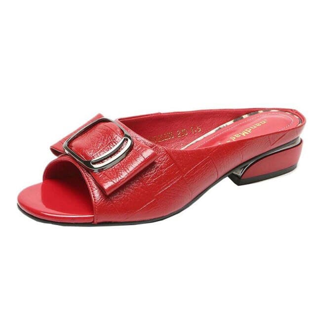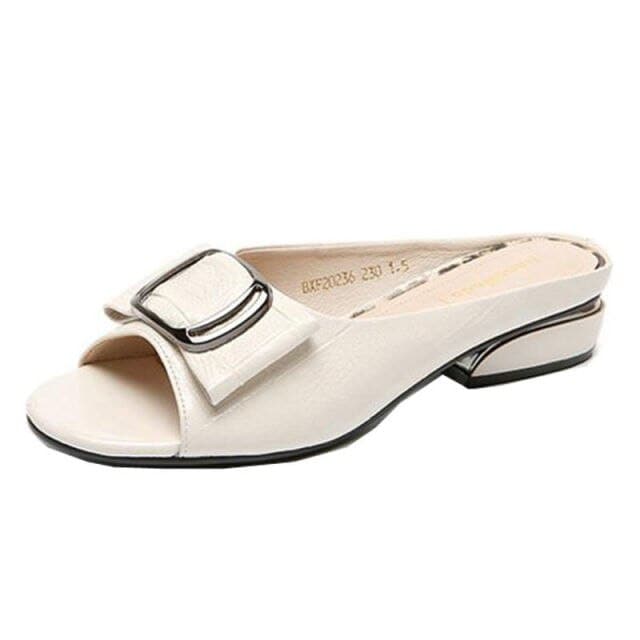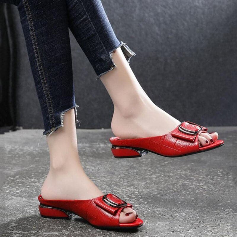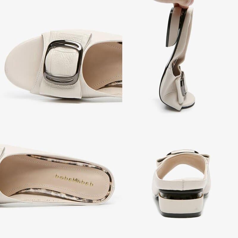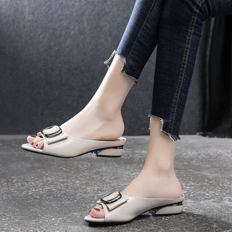 Designer Peep Toe Metal Decoration Buckle Shallow Square Heel Slippers Shallow Party Sandals Women Slides Plus Size
