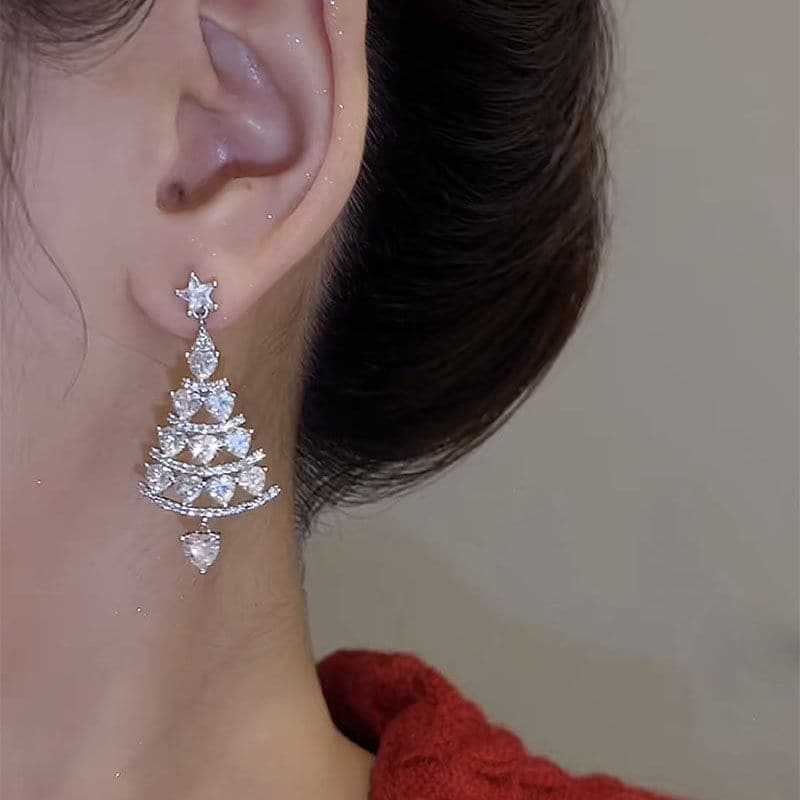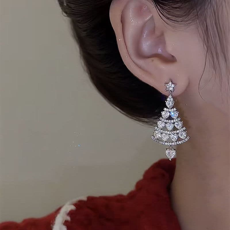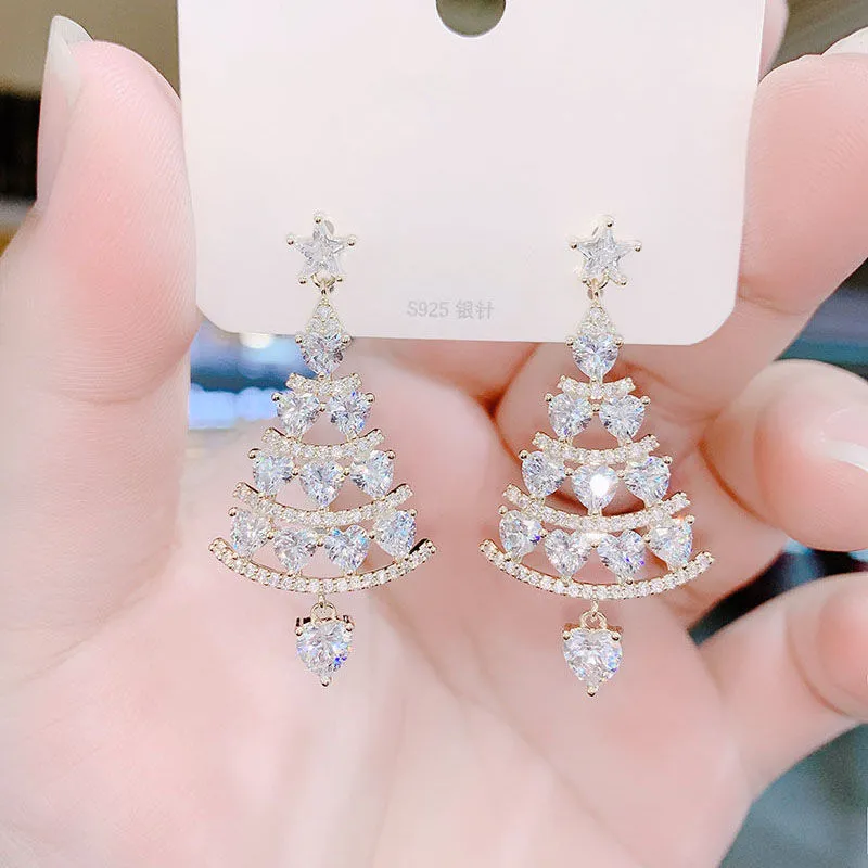 Christmas Tree Earrings Silver Needle High Sense Light Luxury
