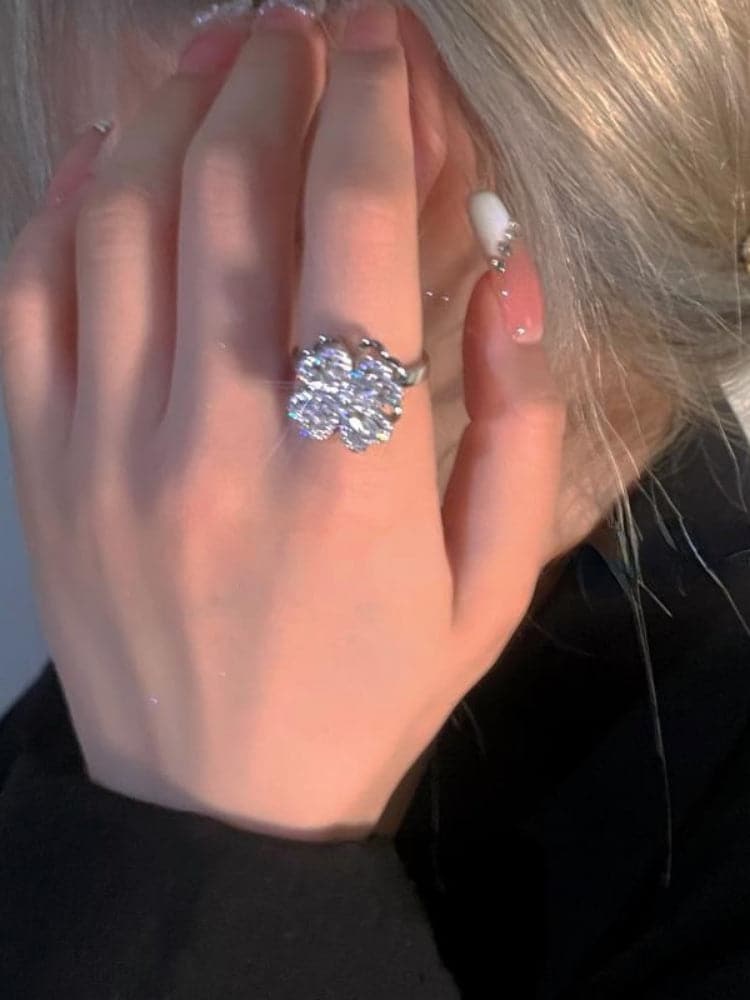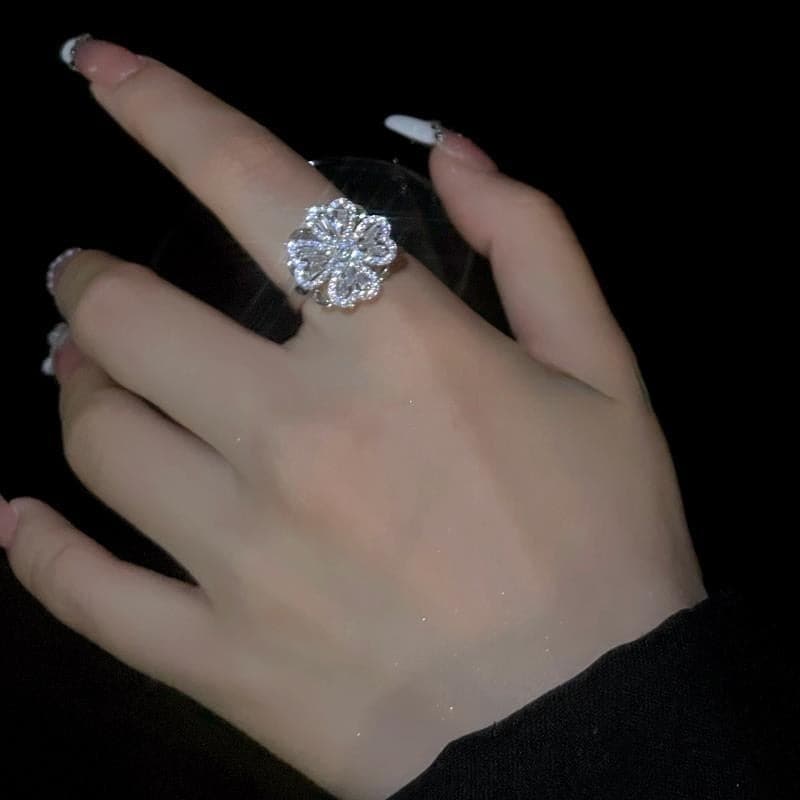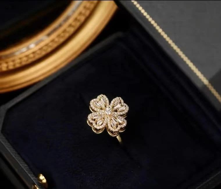Ring Clover Lucky Guardian Jewelry Light Luxury Diamond Opening Fashion Rotating Flower Rings