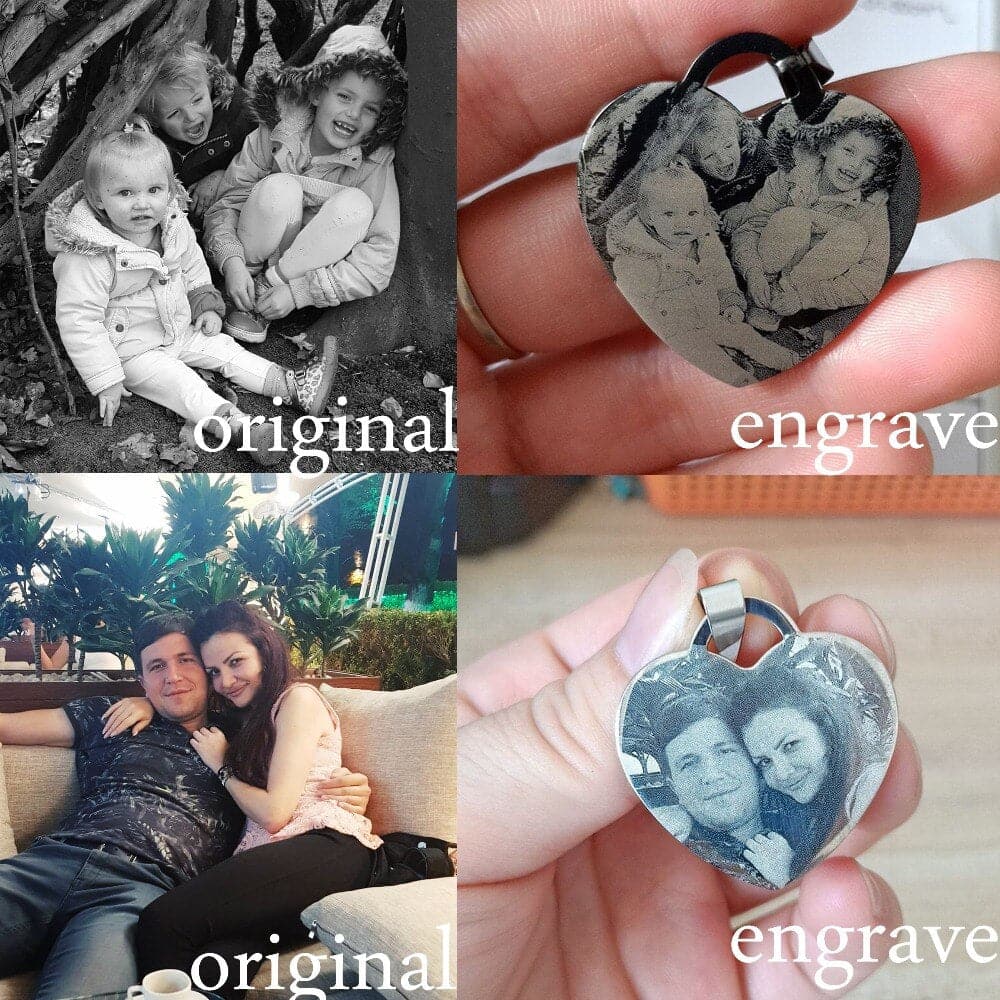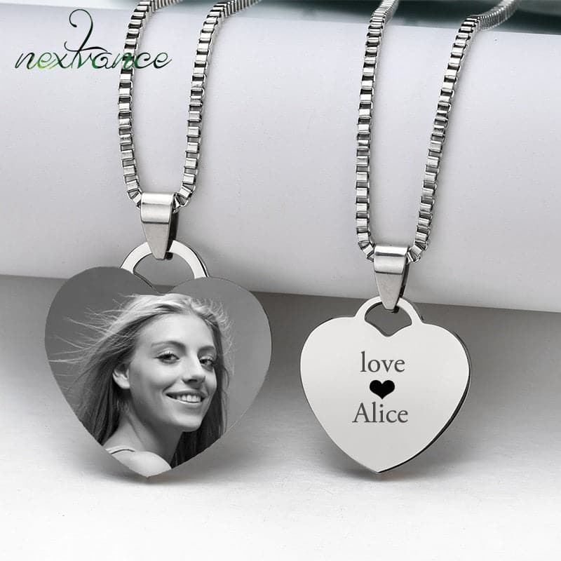 Customized Necklaces Engrave Photo Name Necklace Stainless Steel Heart Pendant Chain Necklace Jewelry For Women ID Tag