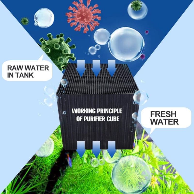 - Filters and absorbs any dirt, bacteria or chemical in your aquarium. The adsorbed material is firmly controlled and oxidized to improve the filtration efficiency while extending the service life of the cube.