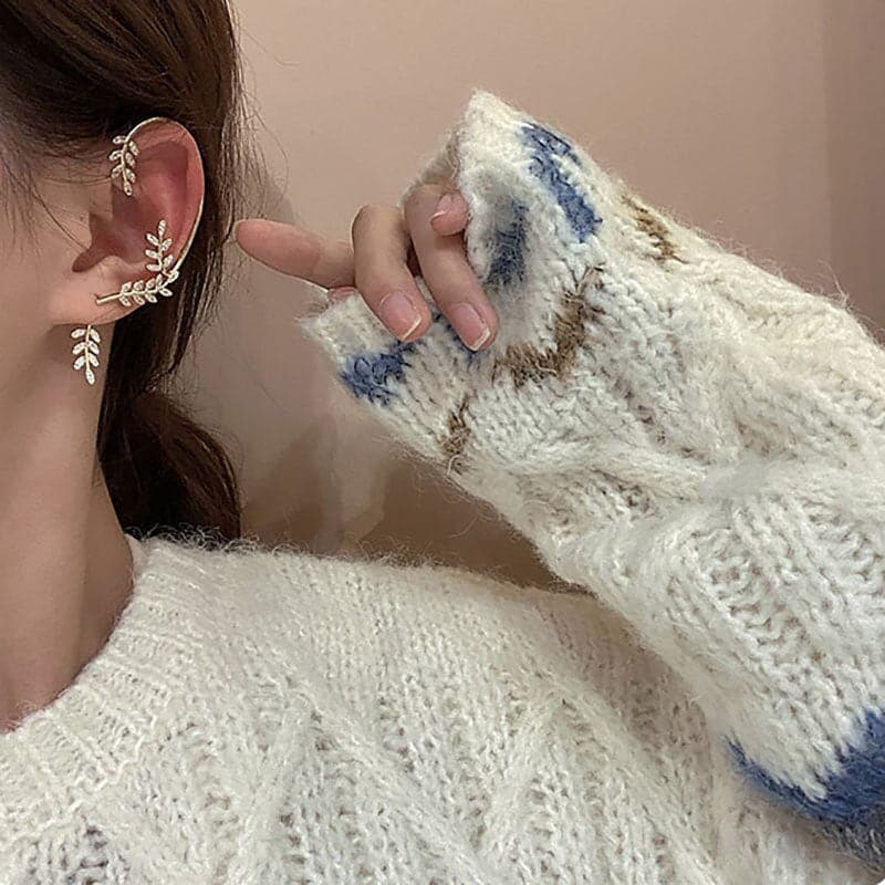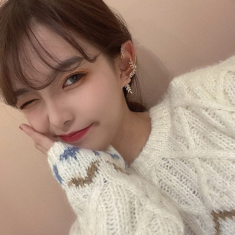 Fashion Leaf Surround Ear Stud Women's Earrings Ear Cuff Fine Sweet Ear Bones Clip for Women Bijoux Jewelry Drop-shipping