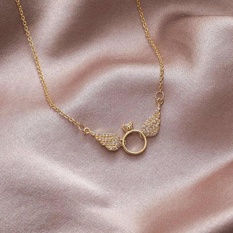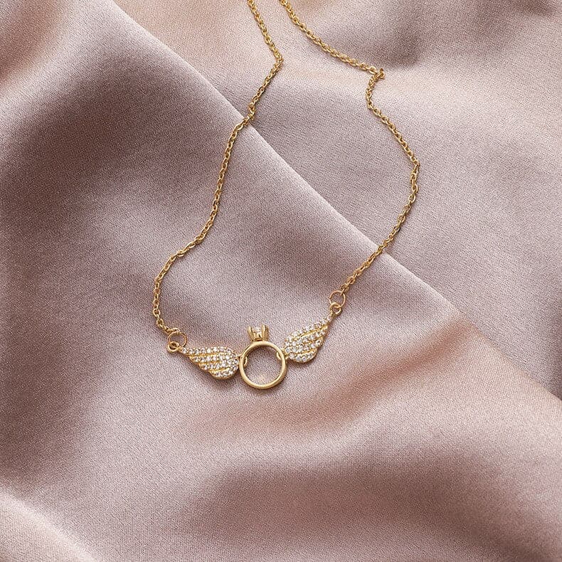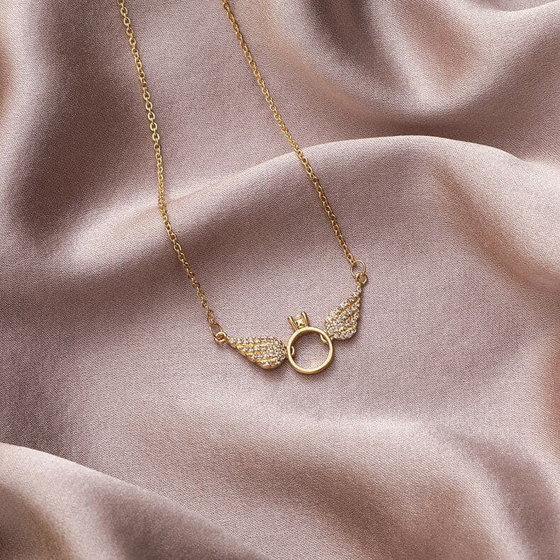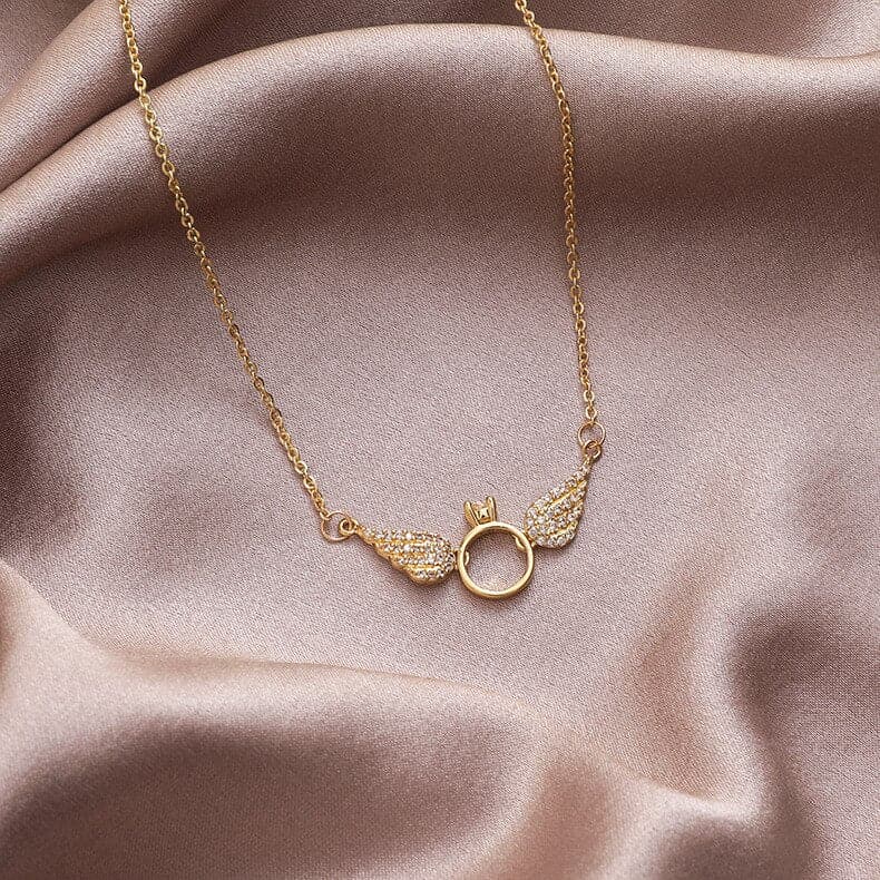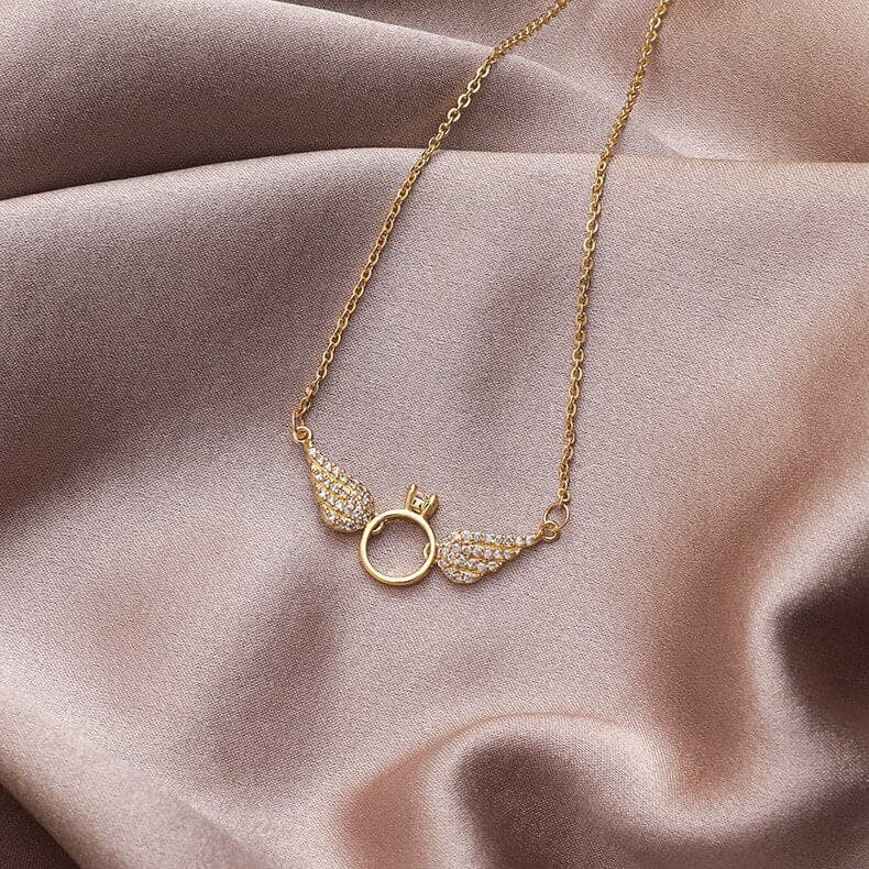 Fashion Shiny CZ Zircon Angel Wing Chokers Necklaces for Women Female Gold Color Copper Alloy Pendant Necklace Jewelry Gift