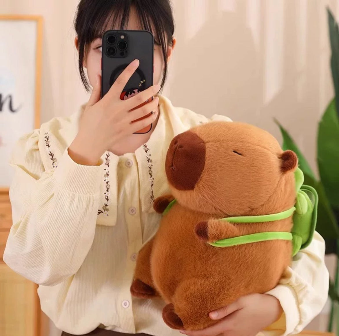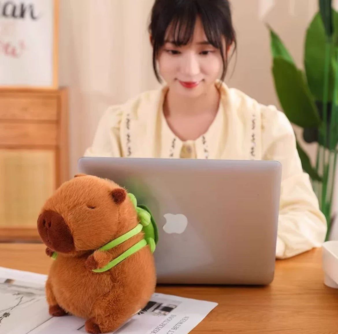 Fluffy Capybara Plush Doll With Tortoise Stuffed Animals Decor