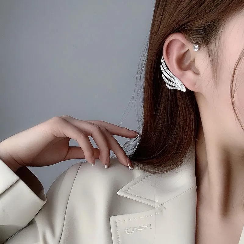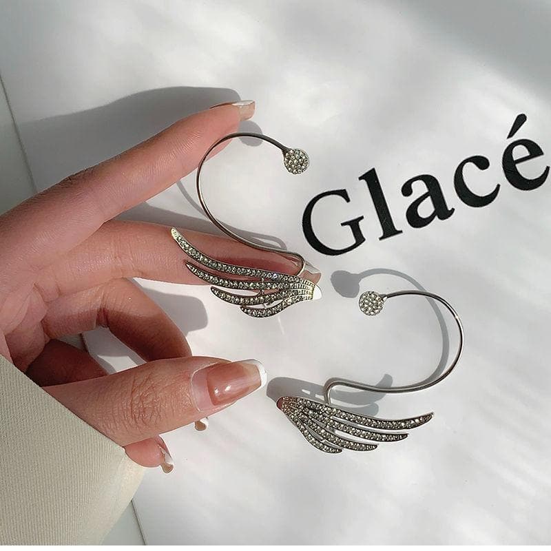 Full Drill Wings Ear Hanging Air Personality Ear Bone Clip without Ear Hole Temperament Retro Female Earrings