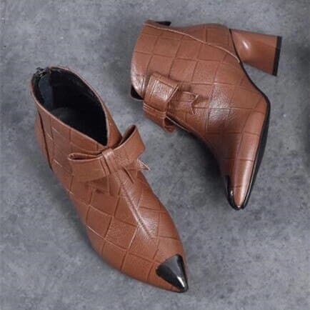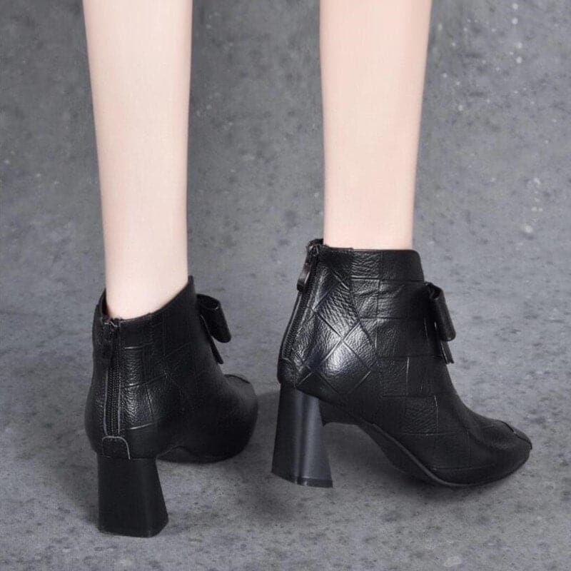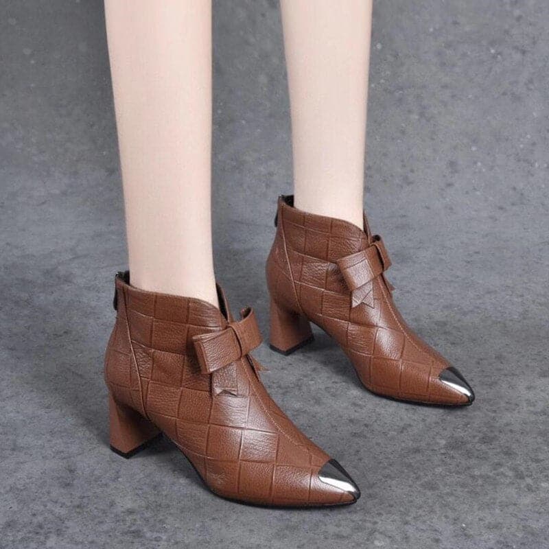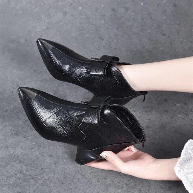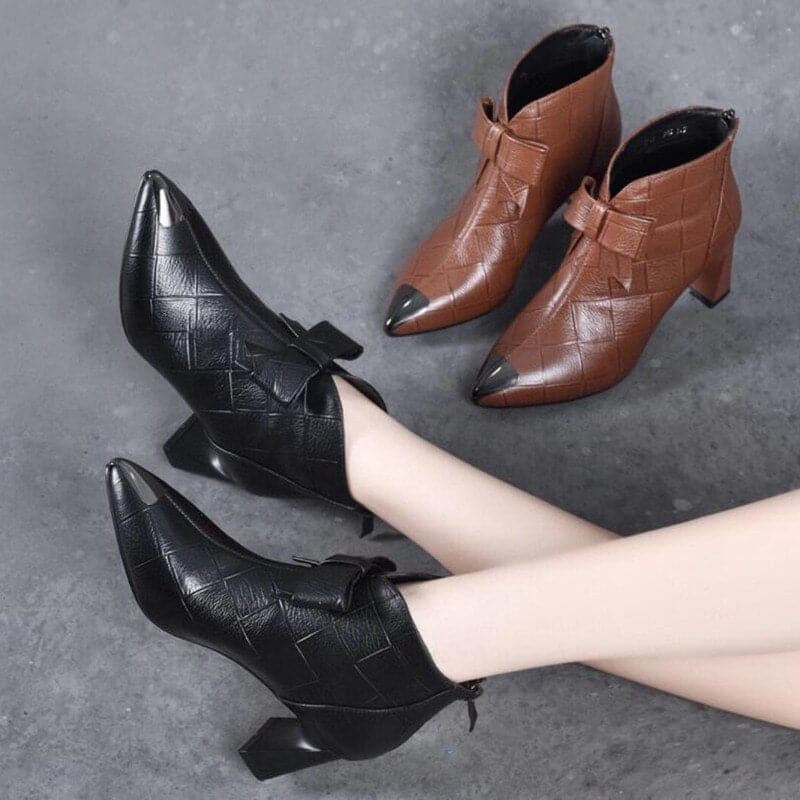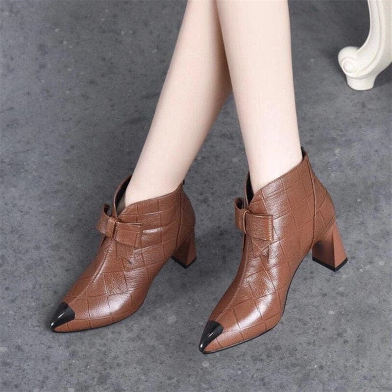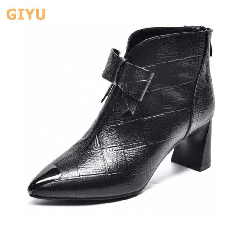 Fashion Genuine Leather Pointed Toe Women Boots Thick High Heels British Martin Single Boot Wedding Party Shoes