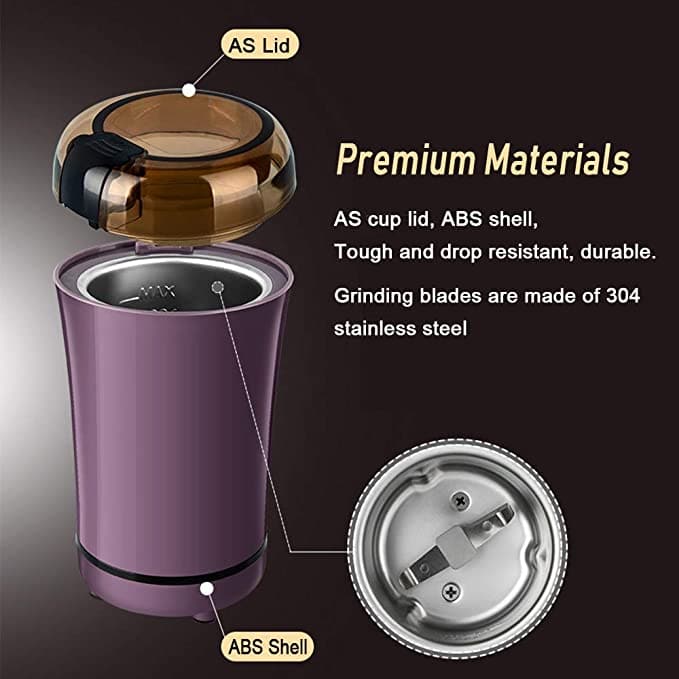 - POWERFUL & FAST: Our powerful coffee grinder helps let the enticing aroma of coffee bean fill the room in seconds. Durable stainless steel blades ensure quickly grinding.