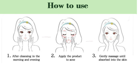 1. After cleansing and toning, apply a proper amount of acne cream to the face acne area. 2. Gently massage until absorbed.
