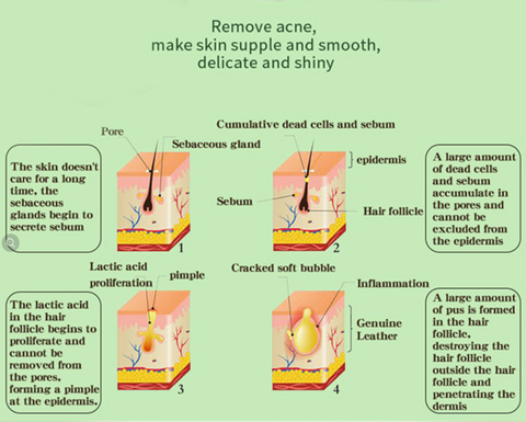 The skin doesn't care for a long time, the sebaceous glands begin to secrete sebum. A large number of dead cells and sebum accumulate in the pores and cannot be excluded from the epidermis. The lactic acid in the hair follicle begins to proliferate and cannot be removed from the pores, forming a pimple| at the epidermis. A large amount of pus is formed in the hair follicle, destroying the hair follicle outside the hair follicle and penetrating the dermis.