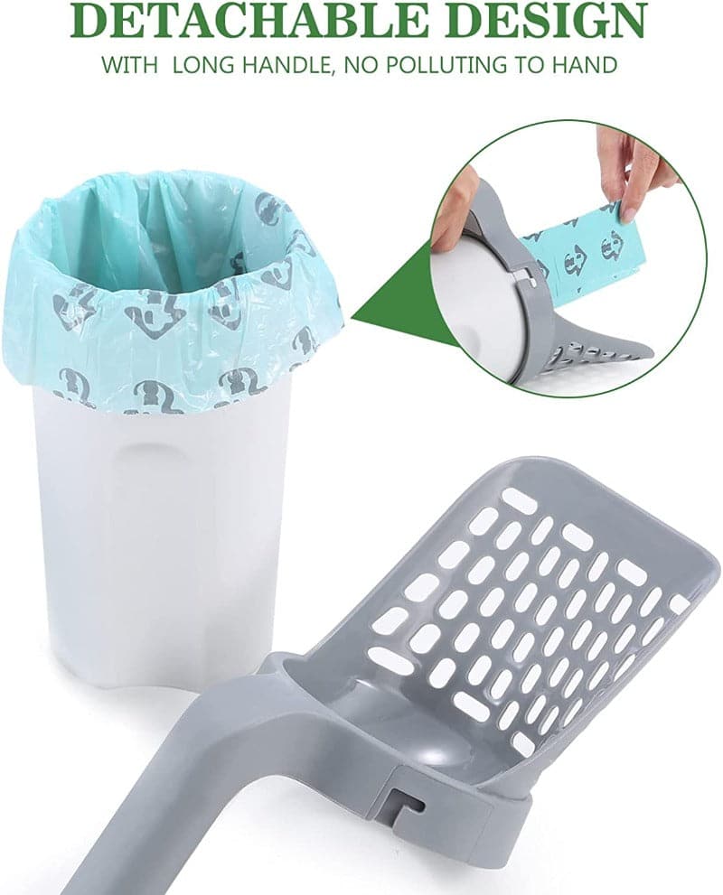 【ESAY TO USE】 Attached waste bin and waste bag that make cleaning the litter box a whole much easier and more convenient than using a scoop and a separate bag. You will find this cat litter scoop size just perfect enough to maneuver in the litter box - especially in corners where your cats tend to pee.