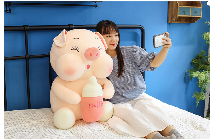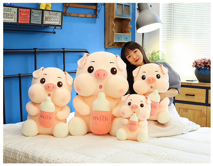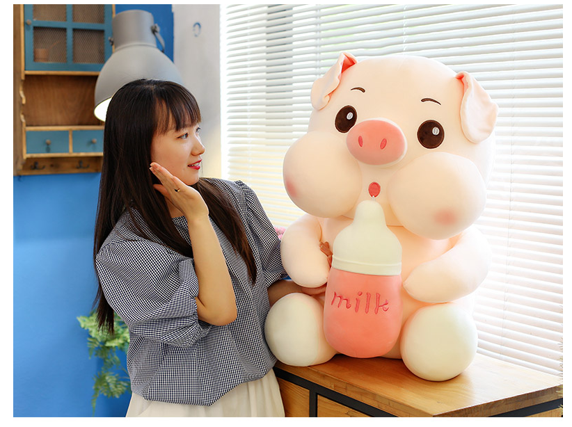 Cute Piggy with Milk Tea Bottle Funny Stuffed Toy Pig Doll Birthday Gifts for Kids Children
