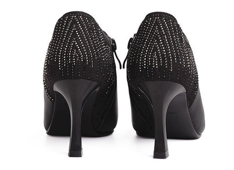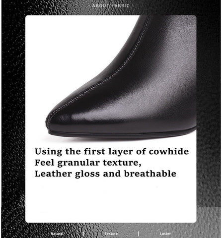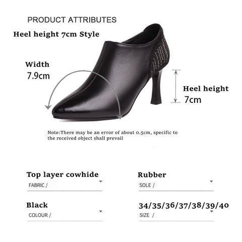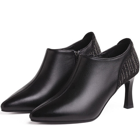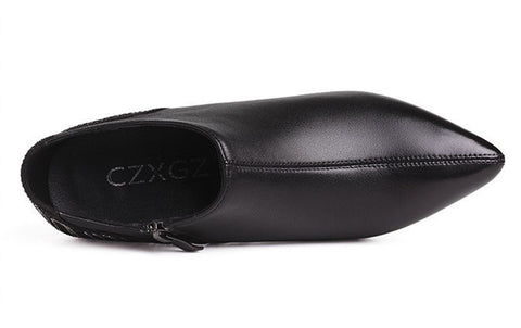 Woman Pointy High Heels Leather Boots Deep Mouth Black Retro Shoes