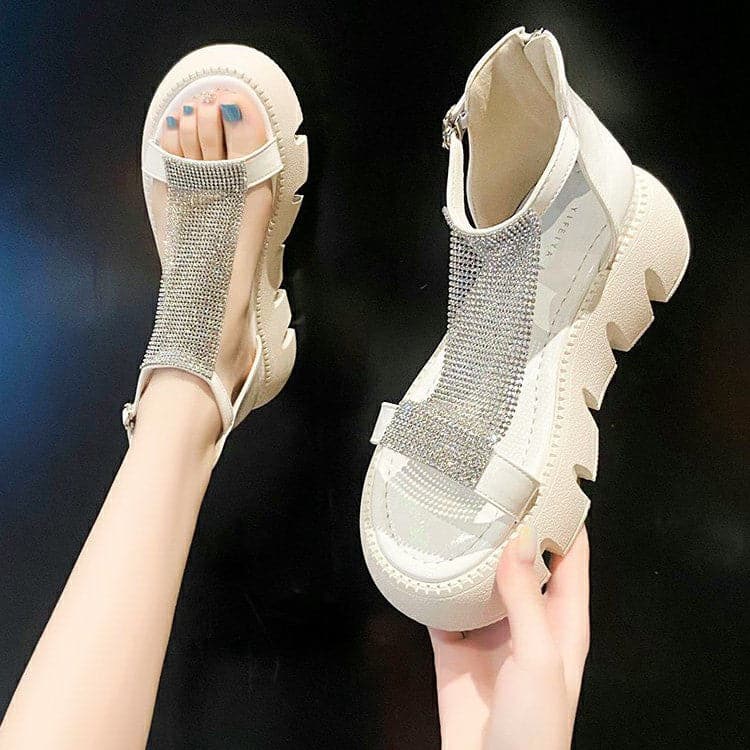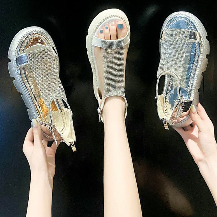 Rhinestone Platform Sandals Women's Summer 2023 Fashion Casual Sponge Cake Beach Sandals