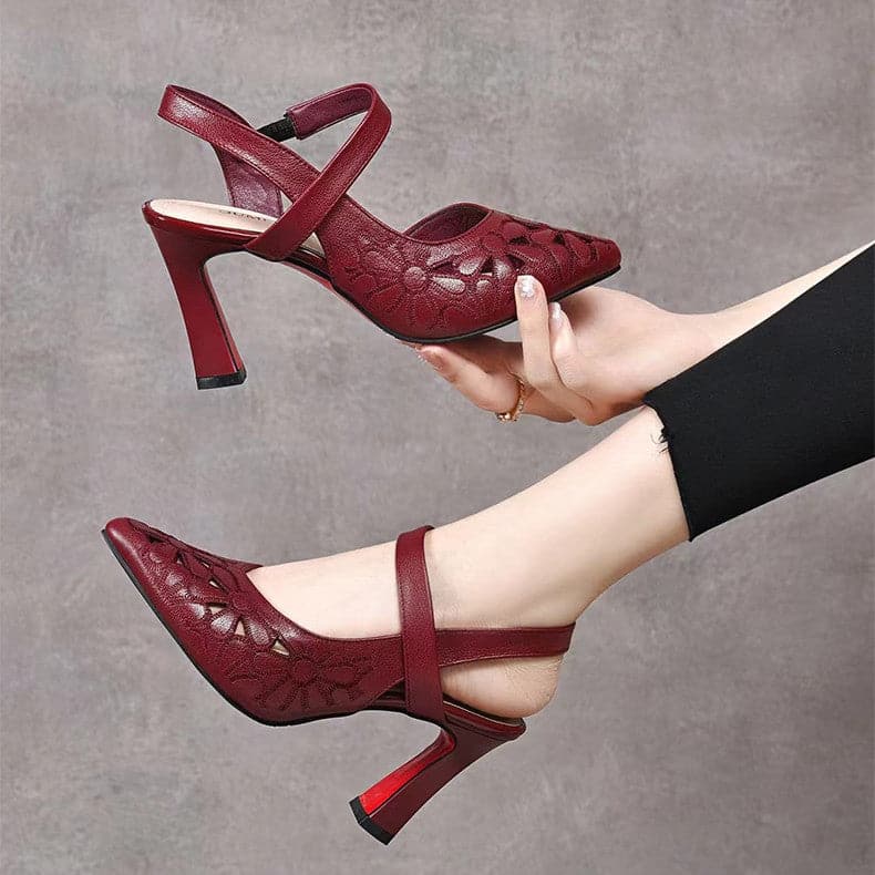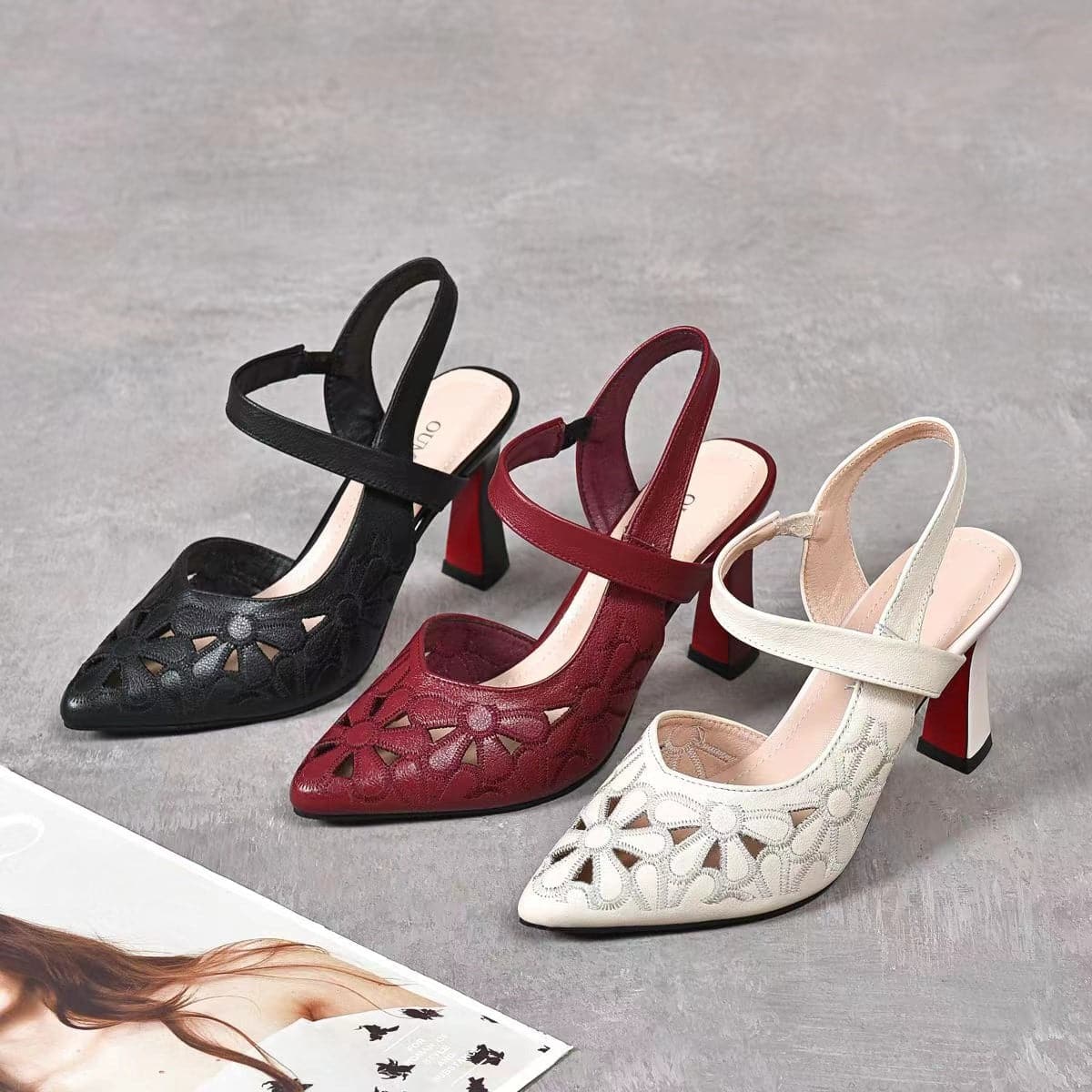 2022 Summer Pointy Hollow Out Thick Heels With One Word Sandals For Women
