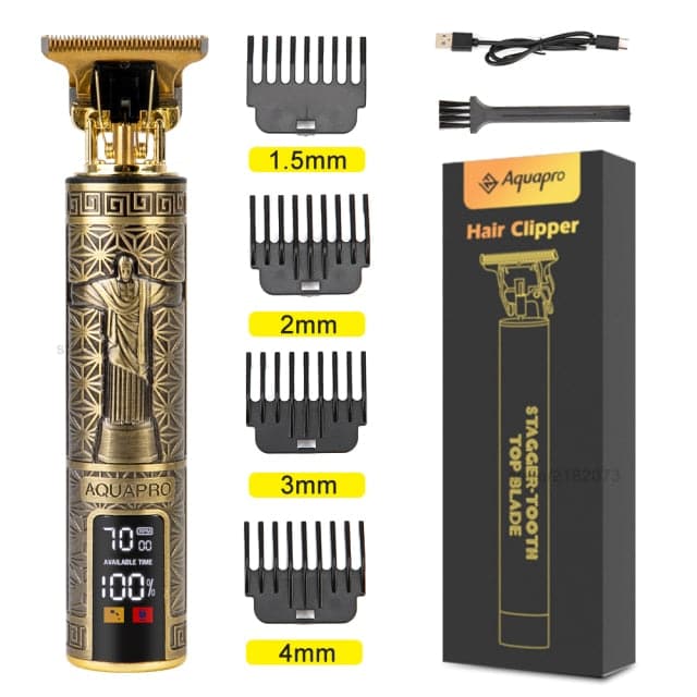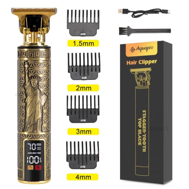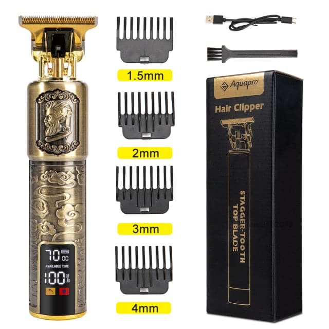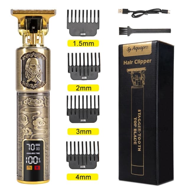 Retro anti-slip metal texture carving design and body one-touch button design for easy hold and control, makes you enjoy hair cutting. The LED display reminds you to charge in time.