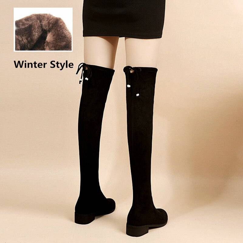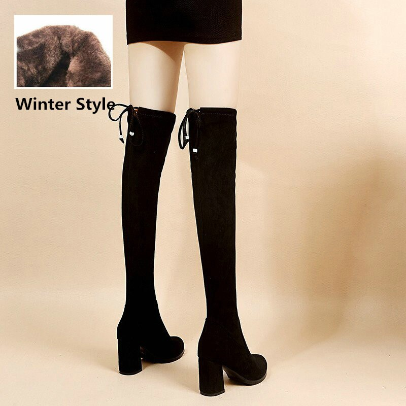 New Plus Velvet High Heel Over The Knee Boots Women's Shoes Casual Thick Heel Stretch Boots