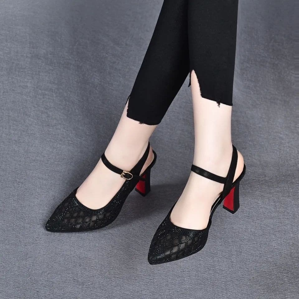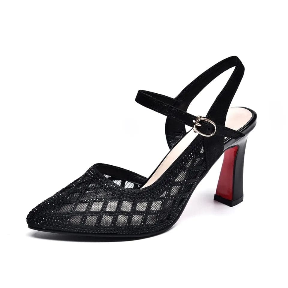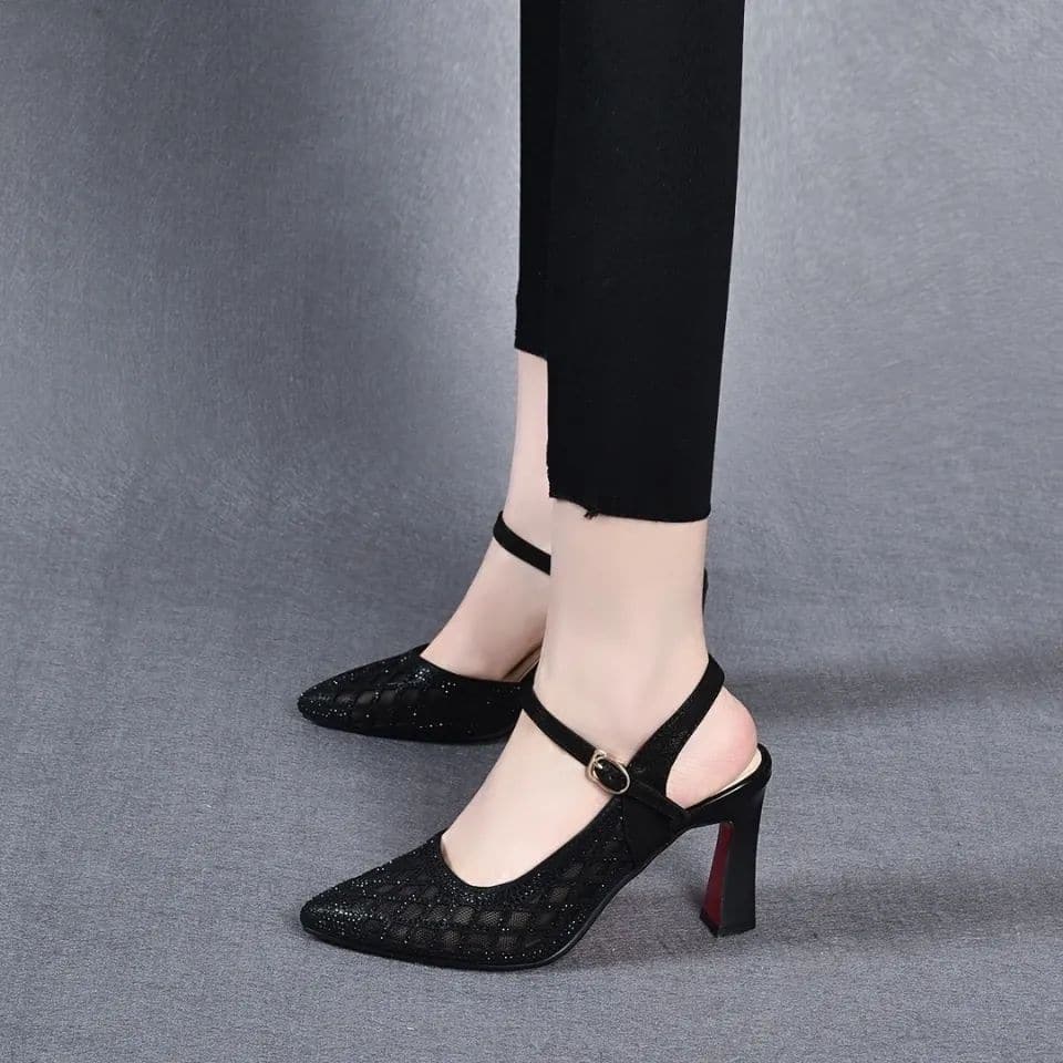 Frosted Sheepskin Mesh Hollow Out Back Sandals Comfortable Bright Diamond Shoes for Ladies