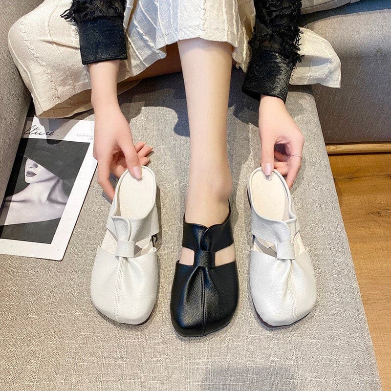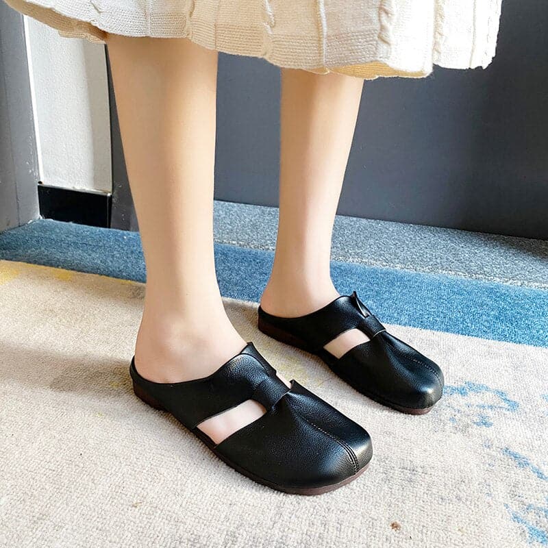 Retro Women's Shoes Summer Flat Slippers Leather Sandals Fashion Zapatillas Casa Mujer Sapatos Femininos Large Size
