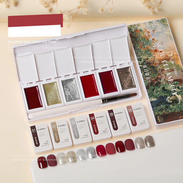 ❤【 6-IN-1 SOLID CREAM GEL NAIL POLISH KIT】New solid cream gel nail polish kit contains different shades of popular and trendy colors need nail art brushes, suit for different seasons and daily routine life! Platter design, easy to carry. Cream nail polish has good toughness and highly pigmented, one stroke coloring. High-quality gel nail polish will give you a perfect nail art appearance.