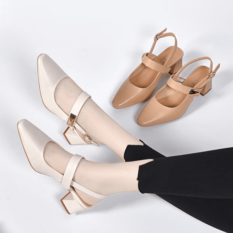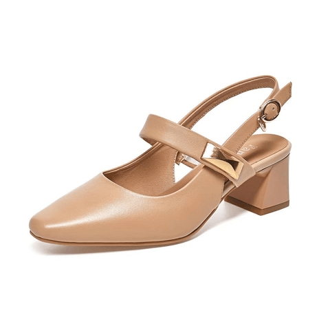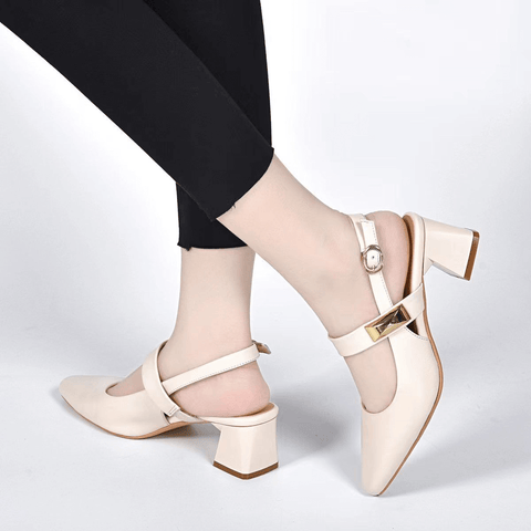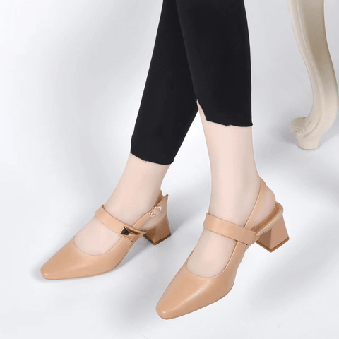Leather Sandals Square Toes Thick Heels Women Shoes